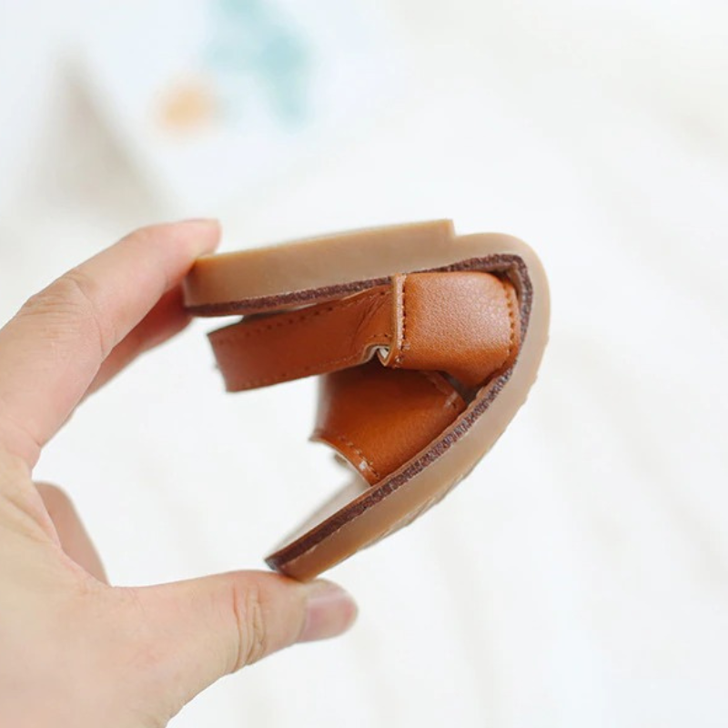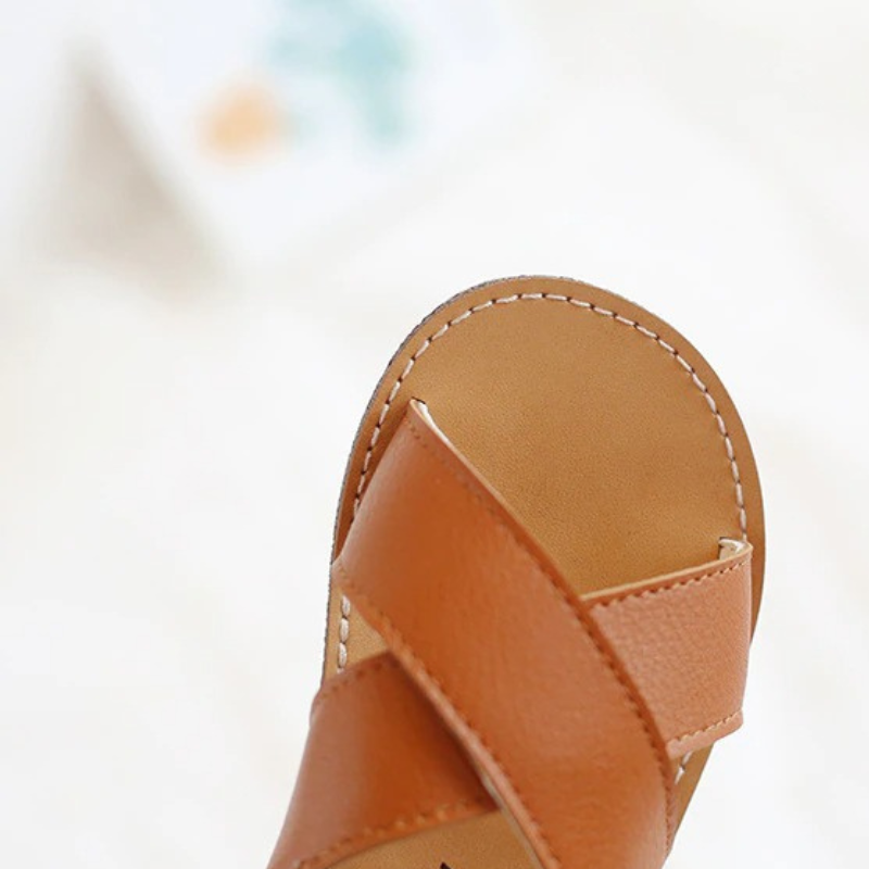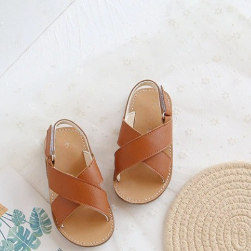 Beautiful Cross-Tied Kids Sandals include smooth leather, a highly flexible sole, and no restrictions on the feet's range of motion. Children receive the full comfort and open style of the sandal version. It is excellent beside the pool, on the beach, and elsewhere because it is not frightened of getting wet.