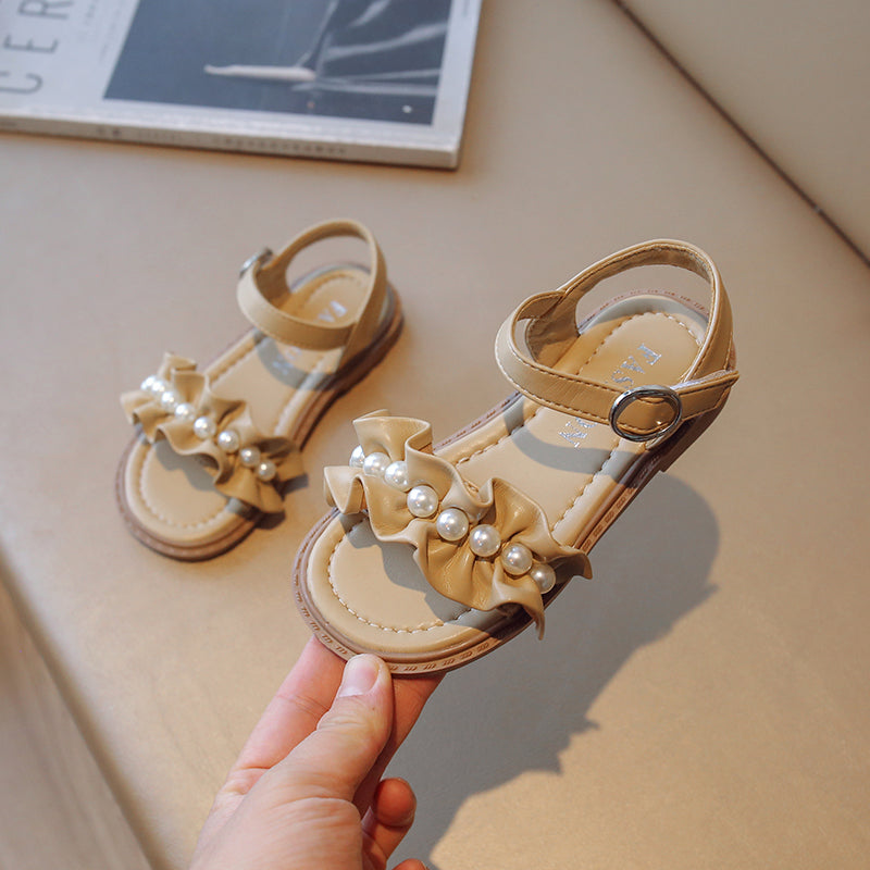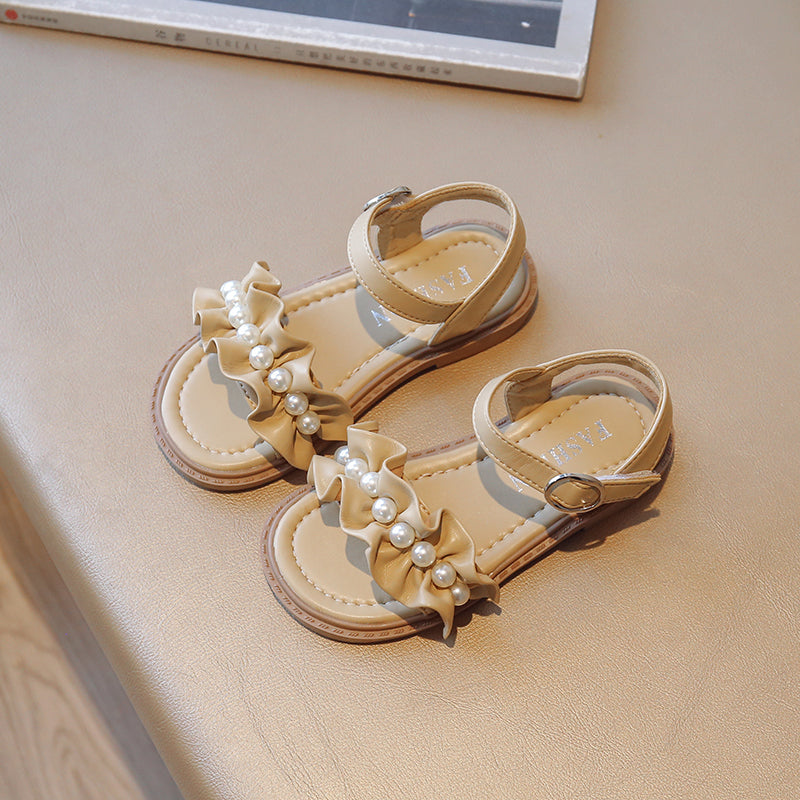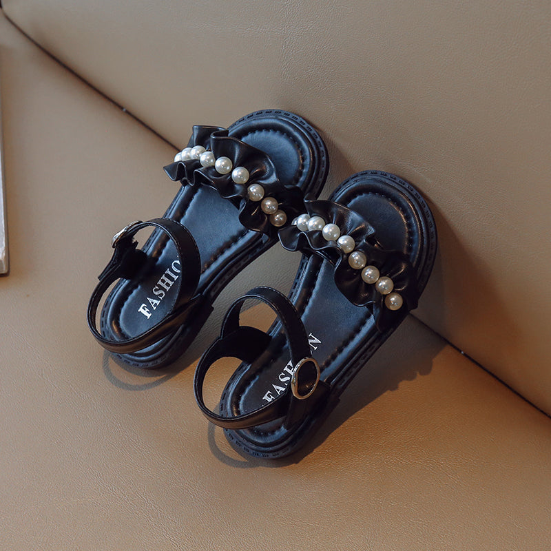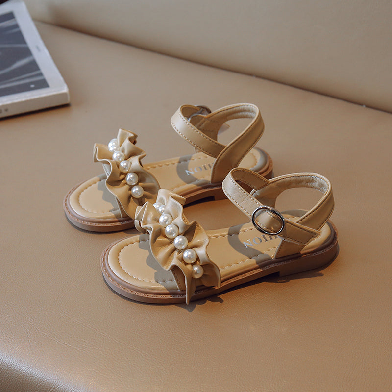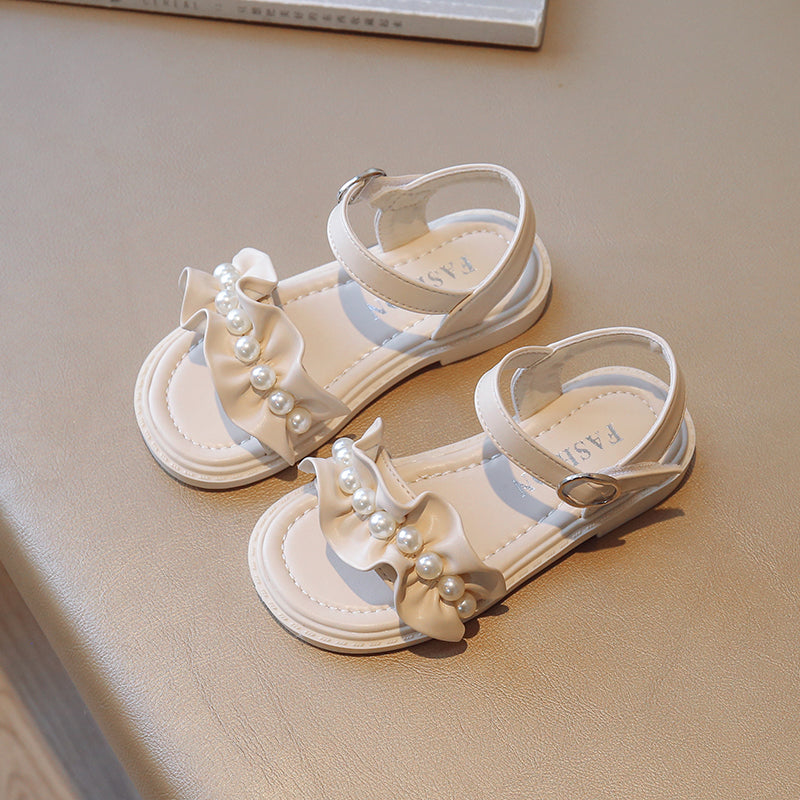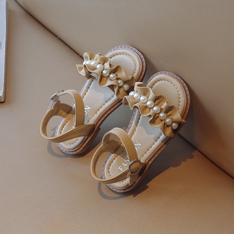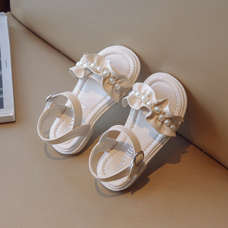 Lace Pearl Pattern Soft Soled Kids Sandals