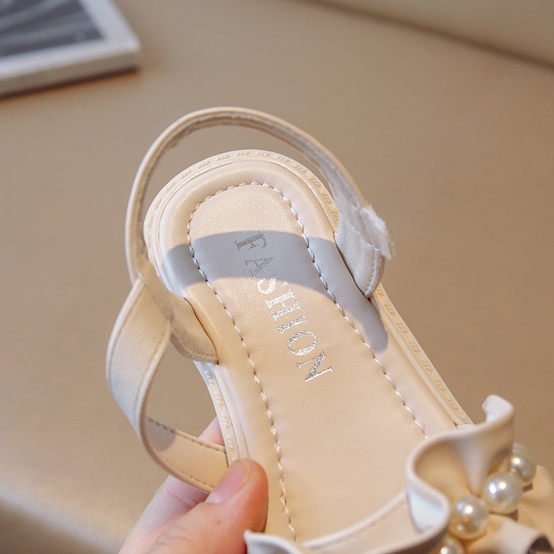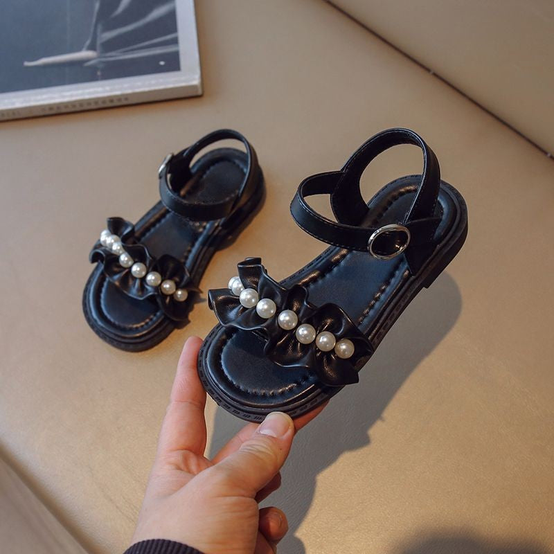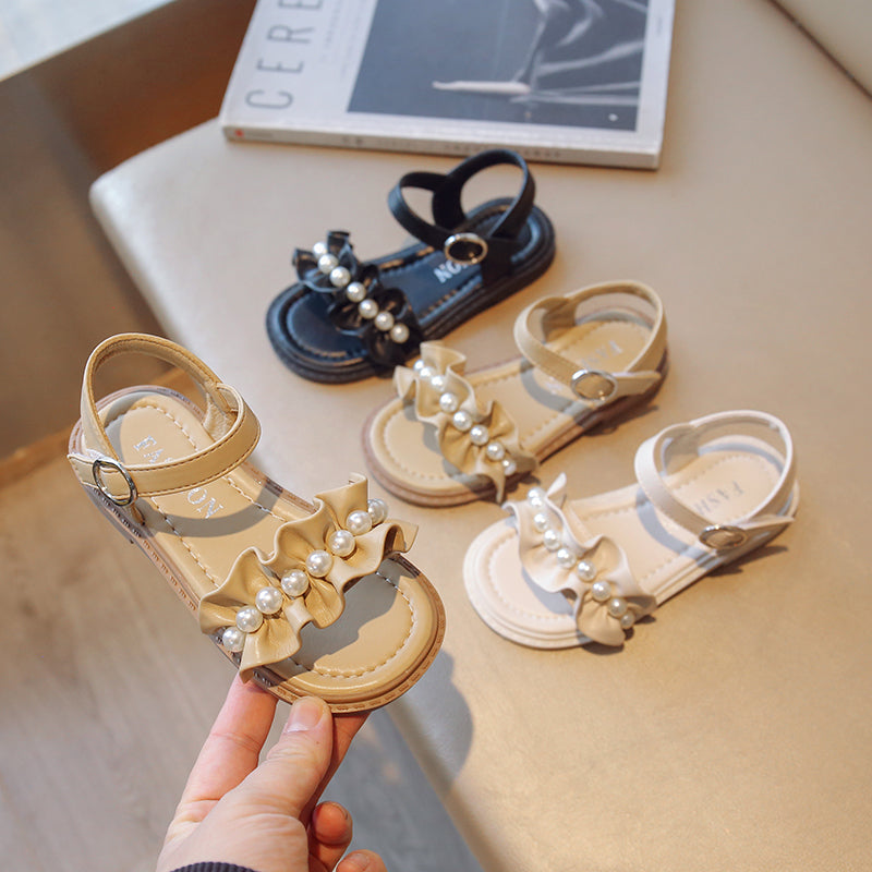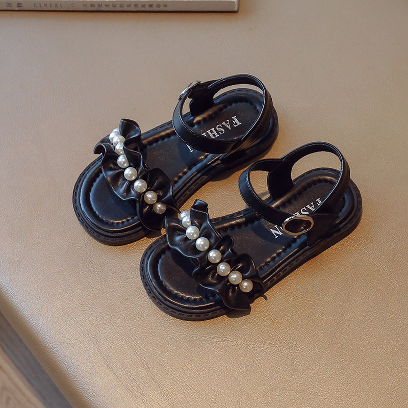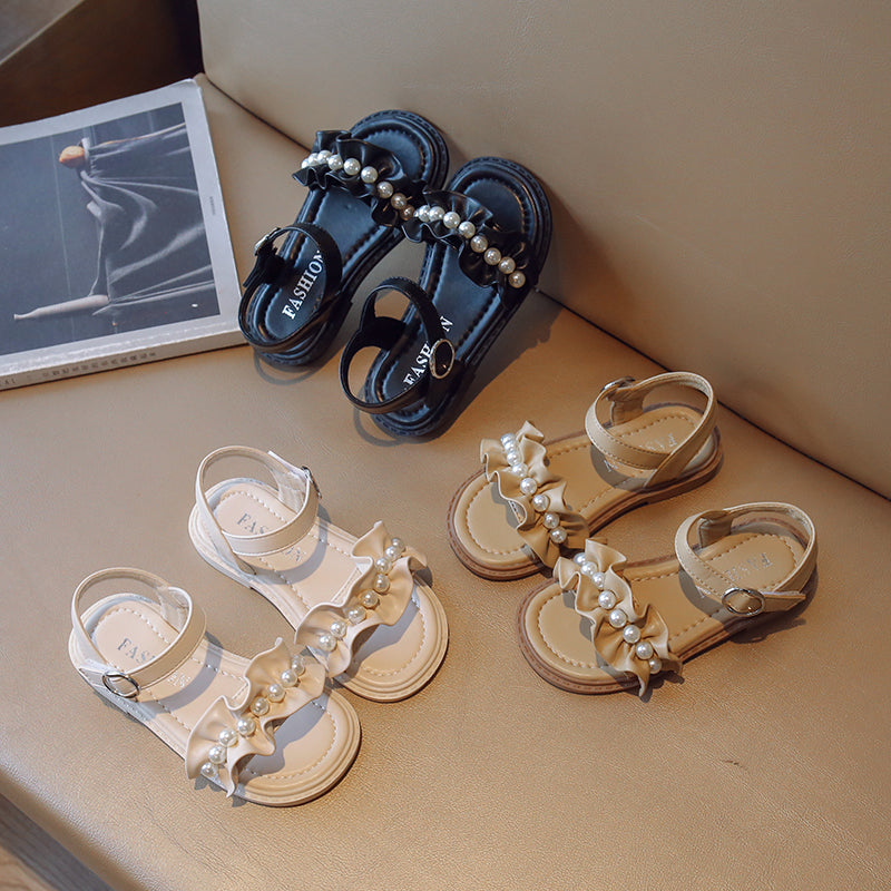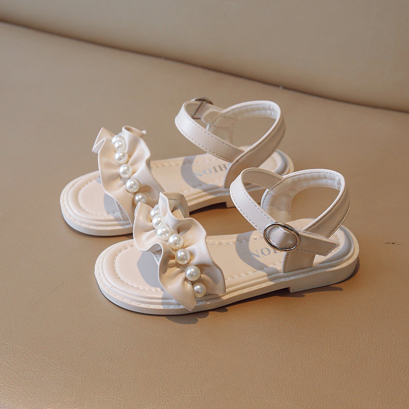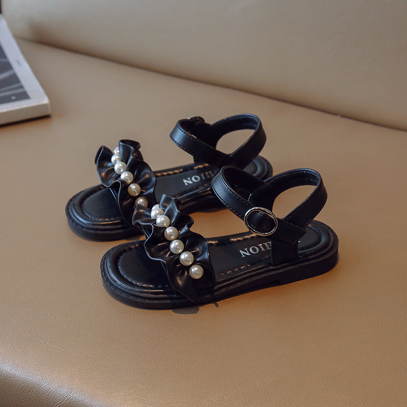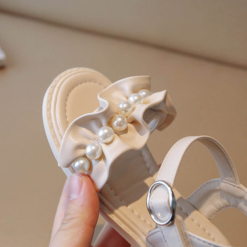 Lace Pearl Pattern Soft Soled Kids Sandals